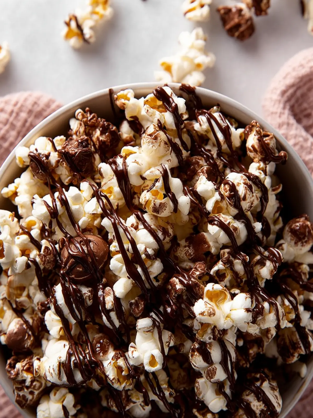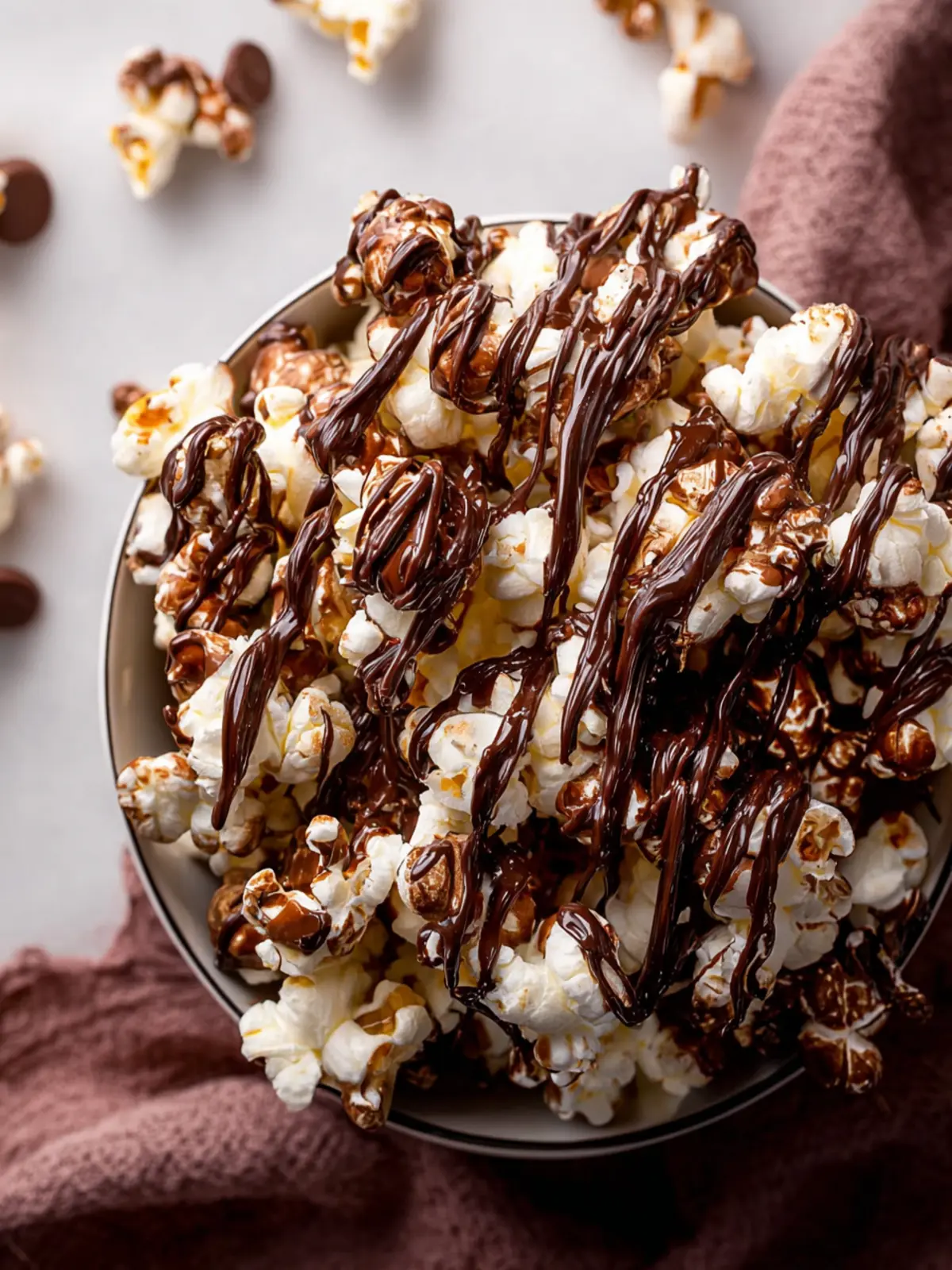 - Peanut Butter and Chocolate: Blend a touch of melted peanut butter into your chocolate drizzle. The creamy, nutty flavor pairs perfectly with popcorn, creating a rich snack.
