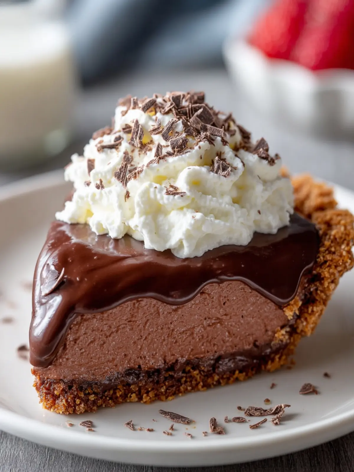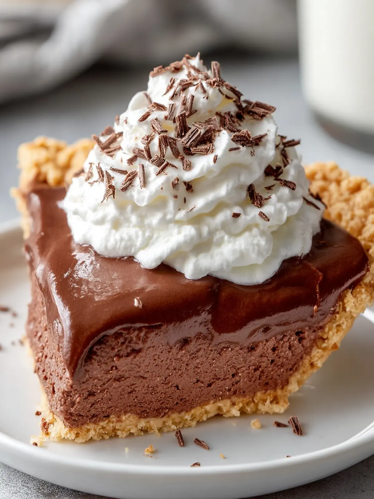 To complement the rich flavors, top your pie with a generous dollop of fresh whipped cream. It adds a light, airy texture that balances the dense chocolate filling beautifully.