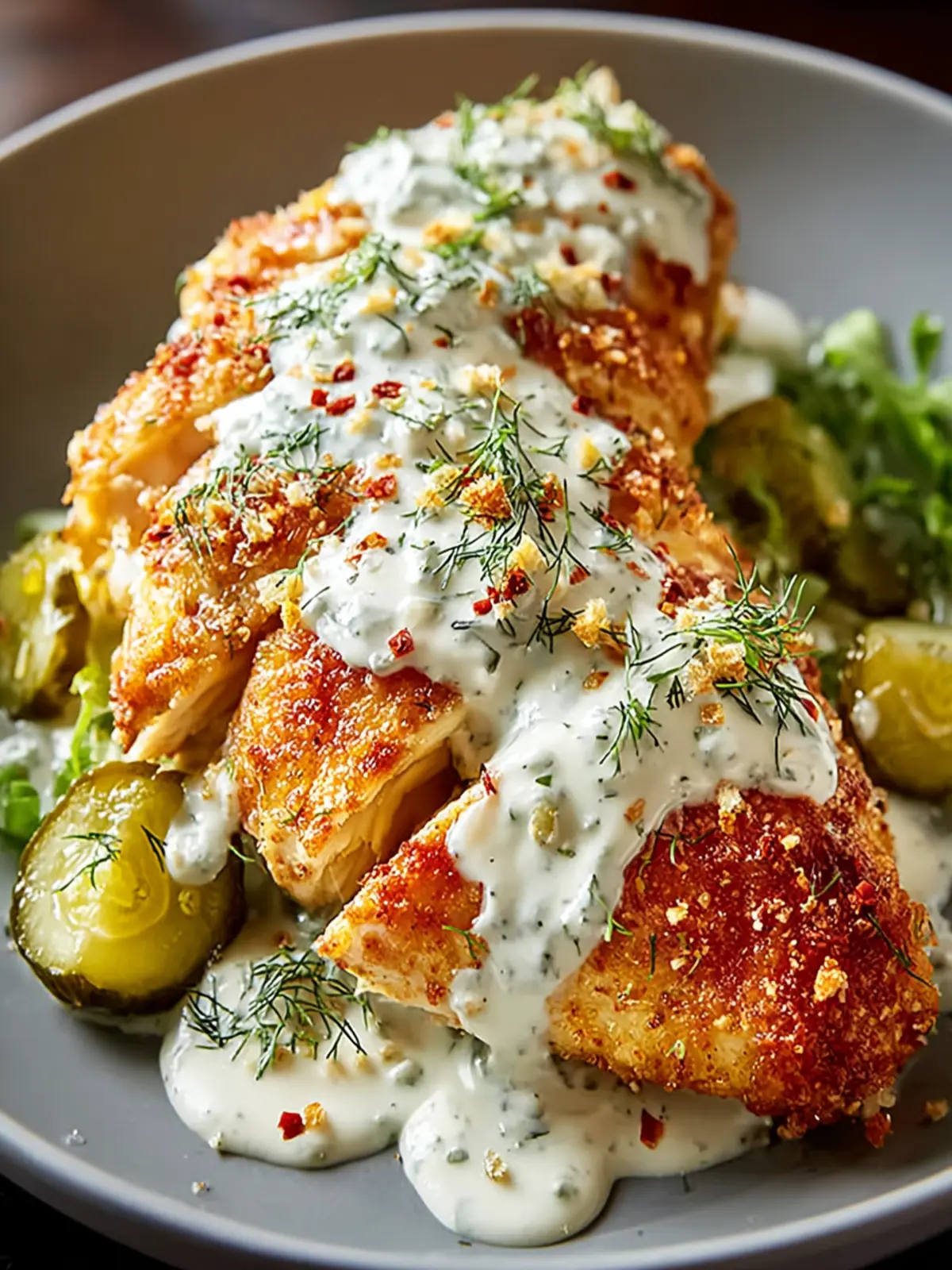Deliciously juicy chicken breasts paired with crunchy dill pickles and creamy Greek yogurt.