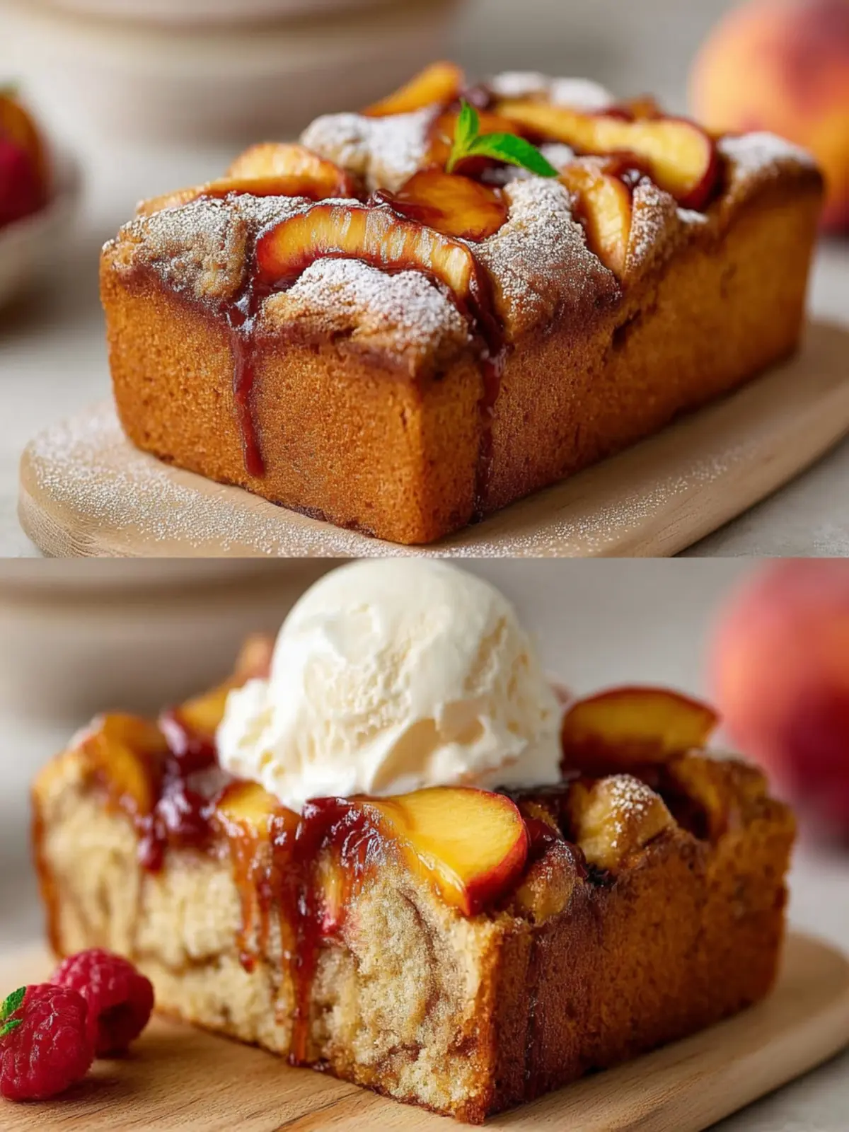 This delightful peach loaf cake is soft, moist, and perfect for any occasion!