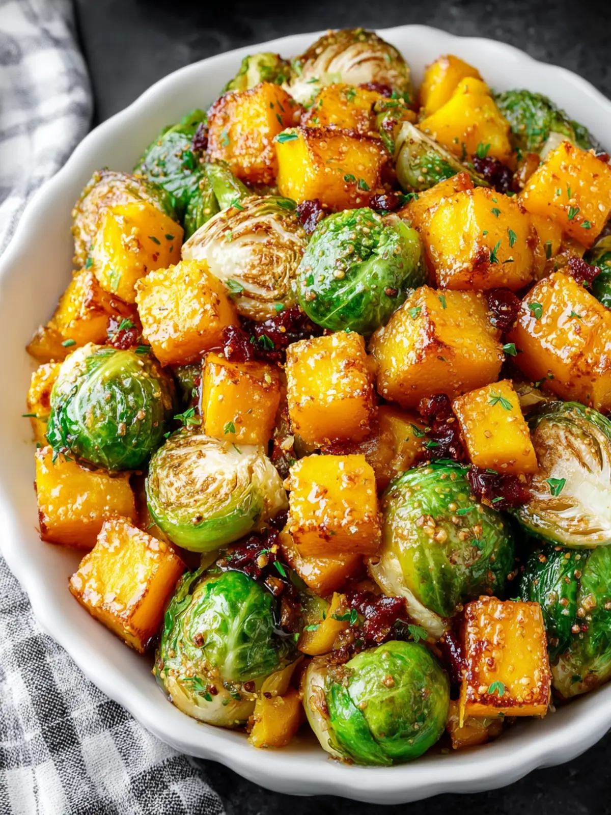 For the best results, opt for firm, fresh butternut squash and vibrant Brussels sprouts. When selecting squash, look for a smooth skin without blemishes. For Brussels sprouts, choose tightly packed, bright green sprouts.