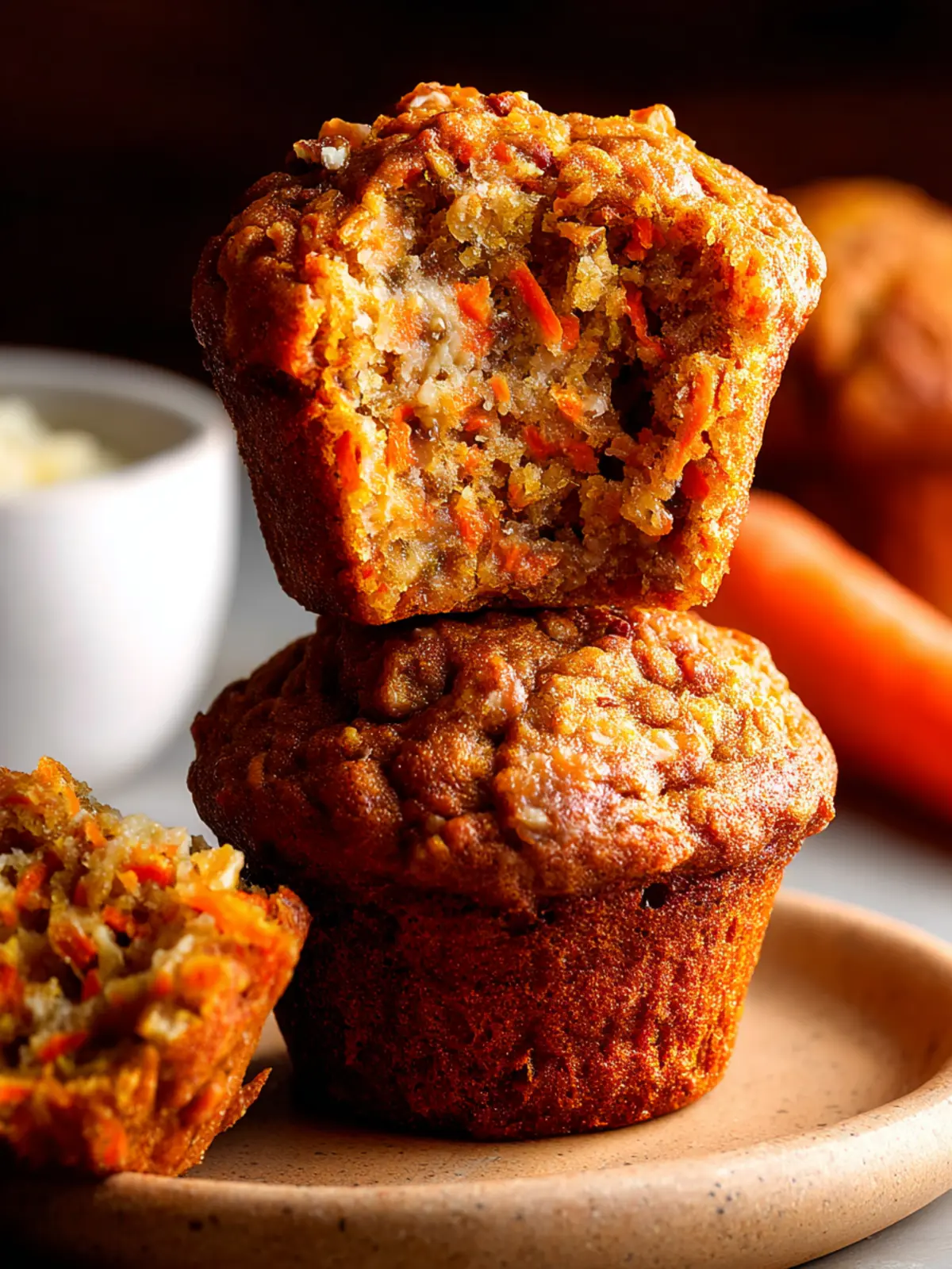 Delicious and moist carrot muffins, perfect for breakfast or a snack.