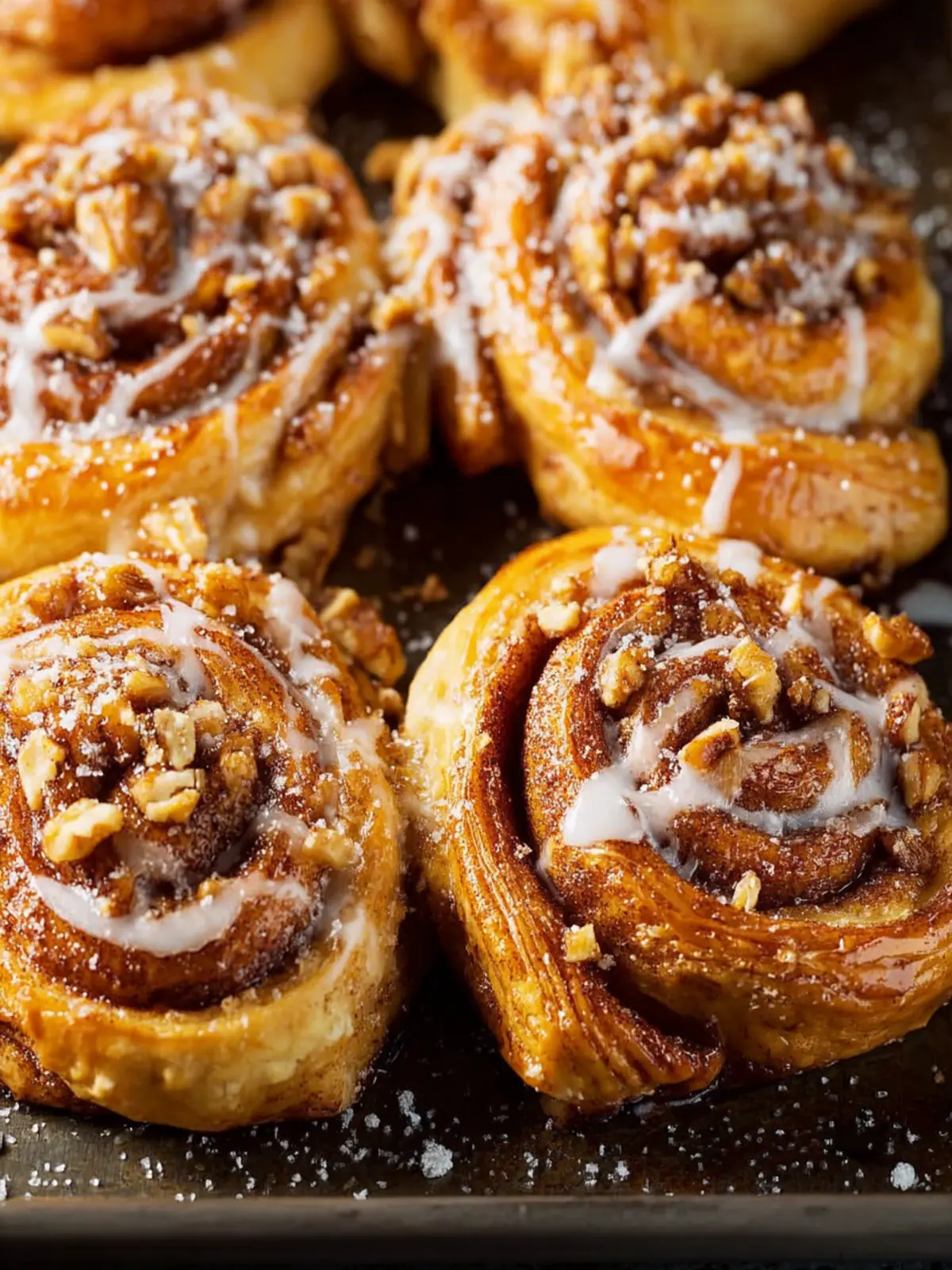 Delicious pecan rolls made with flaky puff pastry and a sweet cinnamon filling.