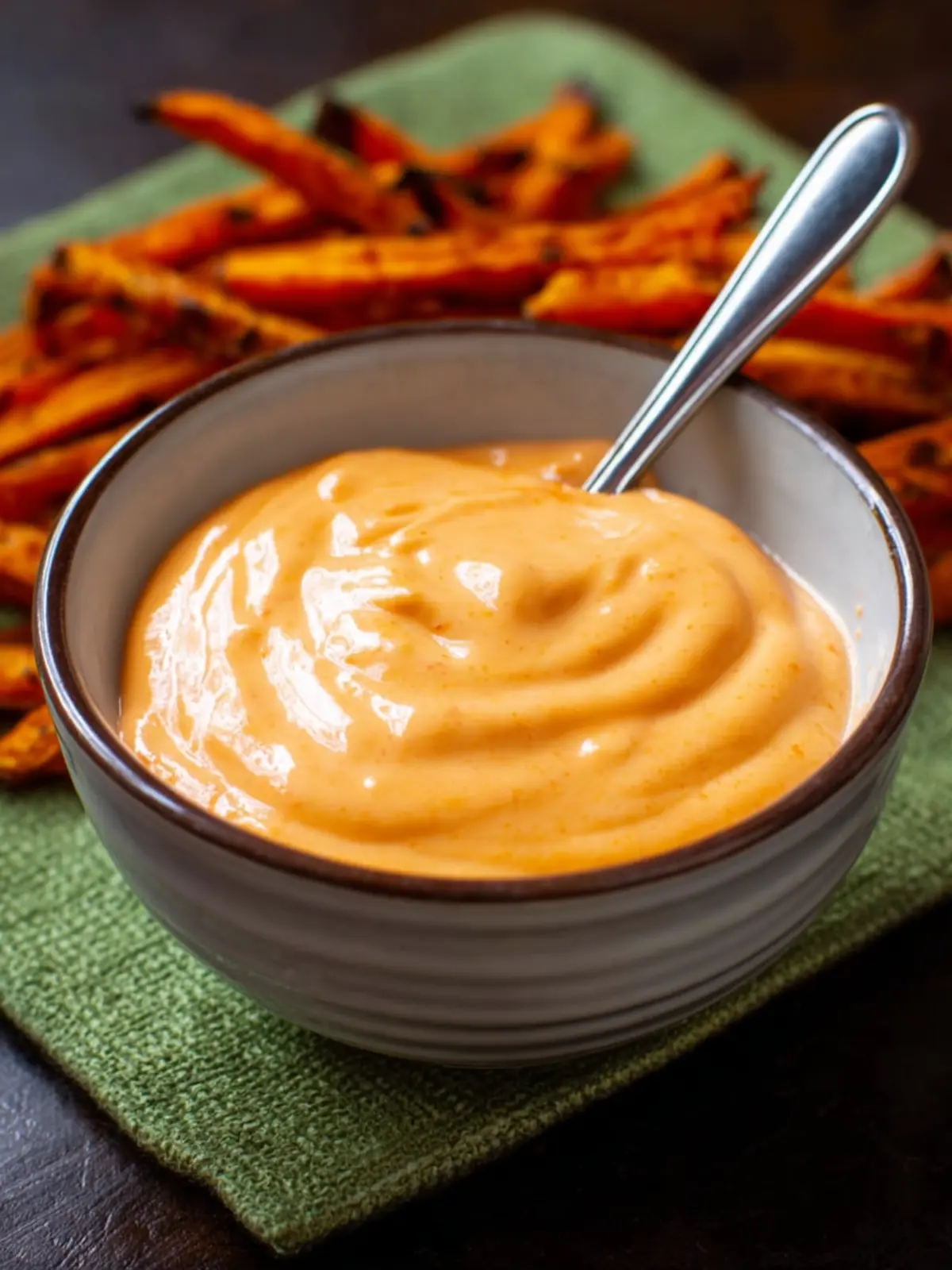 - Serve dipping sauce with Spicy Baked Sweet Potato Fries or Air Fryer Spicy Sweet Potato Fries.
